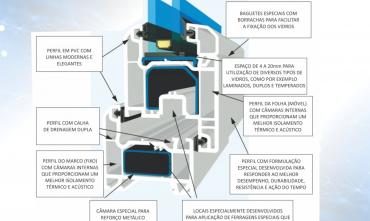 A tecnologia em PVC já supera a madeira, o aço e o alumínio porque são incrivelmente duráveis e resistentes às mudanças climáticas e são totalmente recicláveis. Design com alto padrão de funcionamento e excelente conforto térmico e acústico.